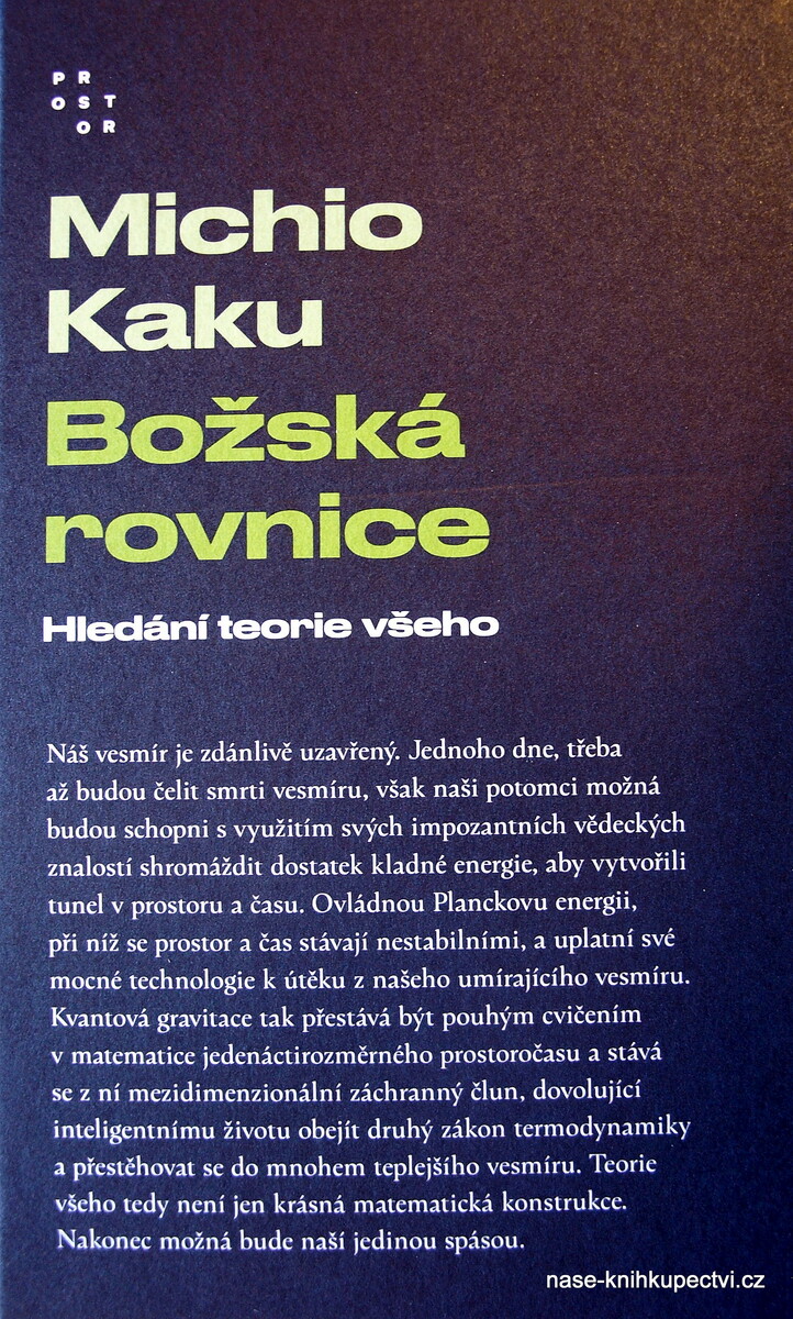 Kaku líčí hledání této finální teorie a všechny prazvláštní peripetie jedné z nejpodivnějších kapitol v dějinách fyziky. Prochází všechny dřívější revoluce, jež nám daly naše technologické divy: newtonovskou revoluci, ovládnutí elektromagnetické síly, teorii relativity, kvantovou teorii a nakonec i dnešní teorii strun. A vysvětluje, proč se kolem této „Božské rovnice“ vedou ostré spory: v sázce není nic menšího než naše představa o vesmíru. Autor má dar poutavě a srozumitelně vyložit i složitá vědecká témata, proto se jeho práce řadí mezi nejoceňovanější odborné a populárně-naučné knihy současnosti.