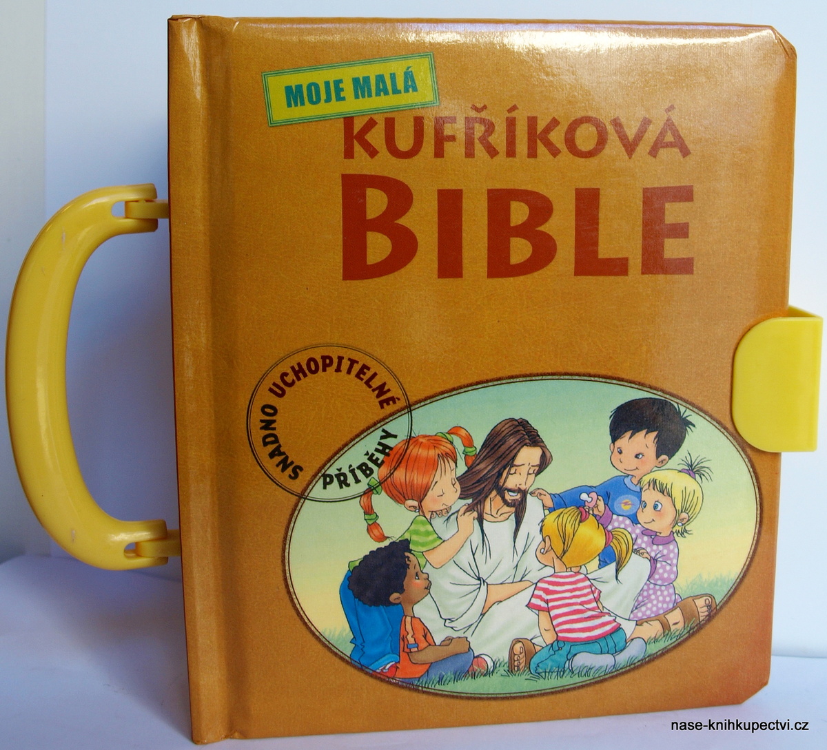 Tato kniha má pevné „leporelové“ stránky, které děti nezničí tak snadno jako papír. Na hřbetu je plastové ouško, takže Bible vypadá jako malý kufřík.